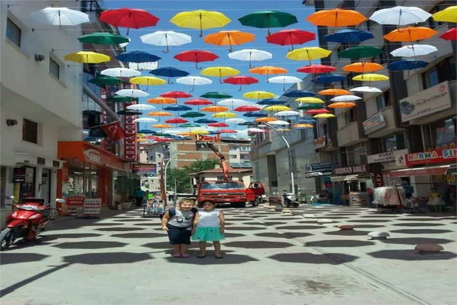PROMOSYON SEMSIYE SOKAK SÜSLEME SEMSIYESI SEMSIYELI SOKAK YAPIMI RENGARENK SEMSIYELER